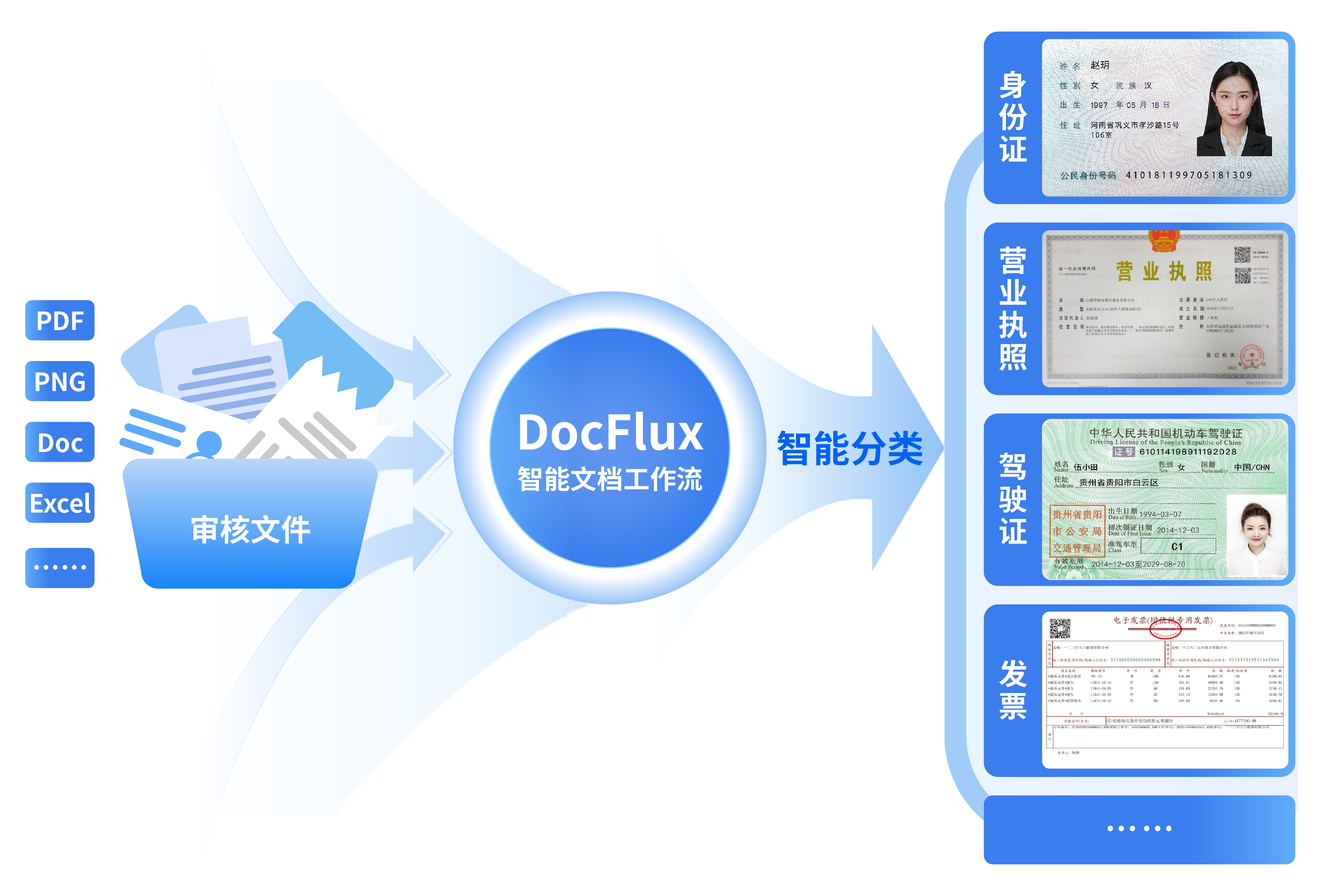 智能分类分拣: 自动拆分混贴、混扫文件,各类单据精准归类。无需人工分类。