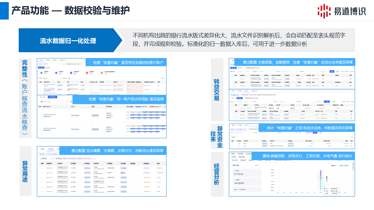 ●完整性核查: 自动核查流水记录的连续性,及时发现日期断点、记录缺失等问题,确保数据完整。