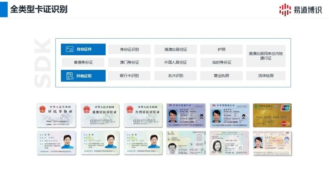 在识别能力上,该SDK支持身份证、银行卡及各类通用证件的毫秒级识别,准确率超过99.5%。复杂光照、倾斜角度、部分遮挡均能有效处理。
